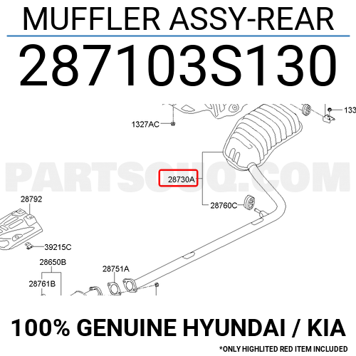 سیستم اگزوز معمولاً شامل منیفولد، لولهها، کاتالیست (در صورت وجود) و مَلفِر/منبع انتهایی است.در این مورد، قطعه 287103S140 مخصوص مدلهای Sonata بین سالهای حدود ۲۰۱۱ تا ۲۰۱۵ (یا Sonata Hybrid) است